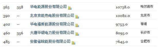 電力企業(yè)中,北京京能熱電股份有限公司(第390位)、華電福新能源股份有限公司(第402位)、安徽省皖能股份有限公司今年首次入圍(第485位)三家公司,首次入圍今年的榜單。