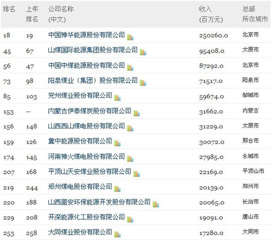煤炭企業(yè)中,內蒙古伊泰煤炭股份有限公司(第153位)、安源煤業(yè)集團股份有限公司(第262位)、中國秦發(fā)集團有限公司(第356位)、永暉焦煤股份有限公司(第392位)、永泰能源股份有限公司(第480位)五家公司,首次入圍今年的榜單。