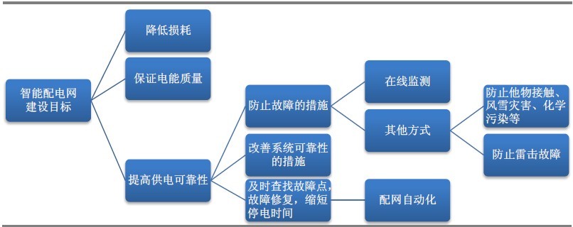 智能配電網(wǎng)的建設(shè)目標(biāo)包括三個(gè)方面:降低損耗、保證電能質(zhì)量和供電可靠性。其中電能質(zhì)量與損耗是相互的,損耗往往伴隨著電壓質(zhì)量的下降;所以實(shí)際上智能配電網(wǎng)的目標(biāo)為提高電能質(zhì)量和提升供電可靠性。